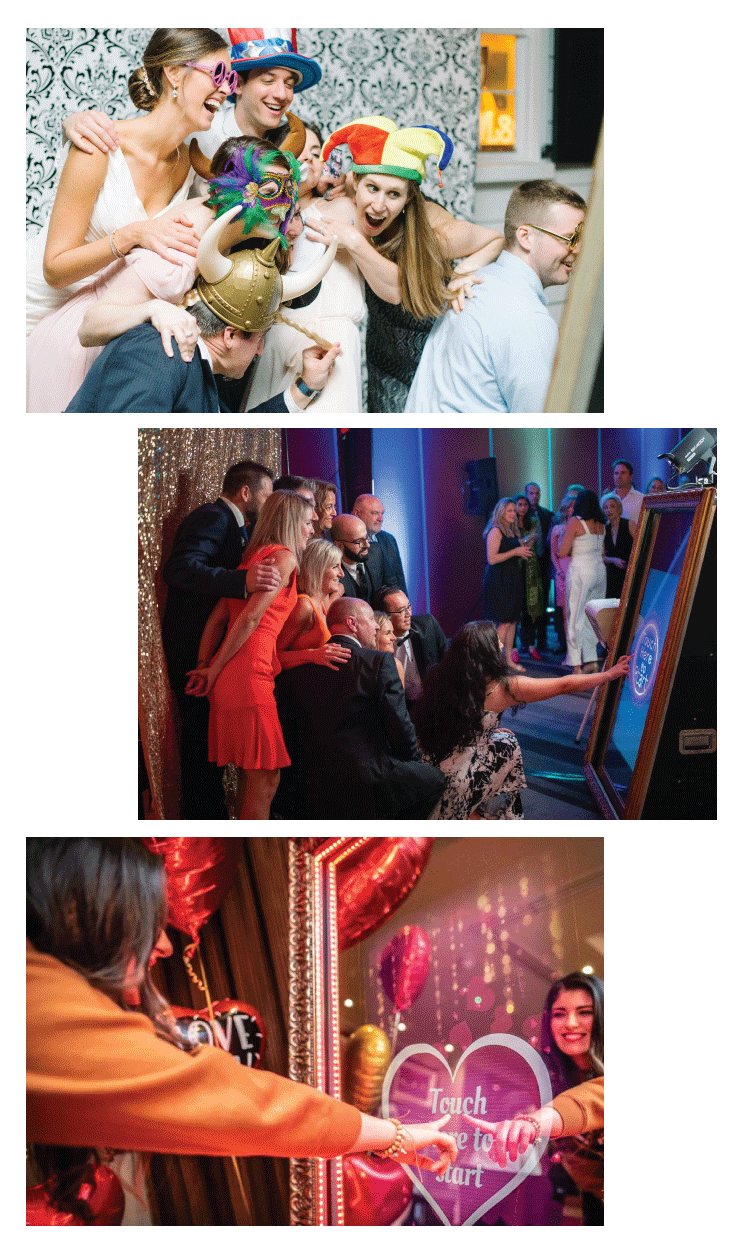 Many years ago, we were the first company to bring the mirror booth concept to the Southeast. This is our most replicated booth but it can never be duplicated! Since it first landed, our team has been perfecting the “vintage” aesthetic and functionality of our original mirror photo booth experience and been pushing the boundaries of creativity and possibility. Sporting a 60 inch touchscreen, interactive controls, incredible photography and live printing, this booth is perfect for guests of all ages and is ALWAYS a show stopper. One feature that truly stands out with this photo booth is the touchscreen animations. The user experience is incredibly engaging any other booth and the way these animations guide guests through the Photo Booth process is truly unlike any other. Technology and aesthetic are our primary focus…and this booth showcases that on a whole new level. If you want a photo booth that looks incredible and will fit in any venue or floorpan, then the Vintage Mirror Photo Booth is for you!